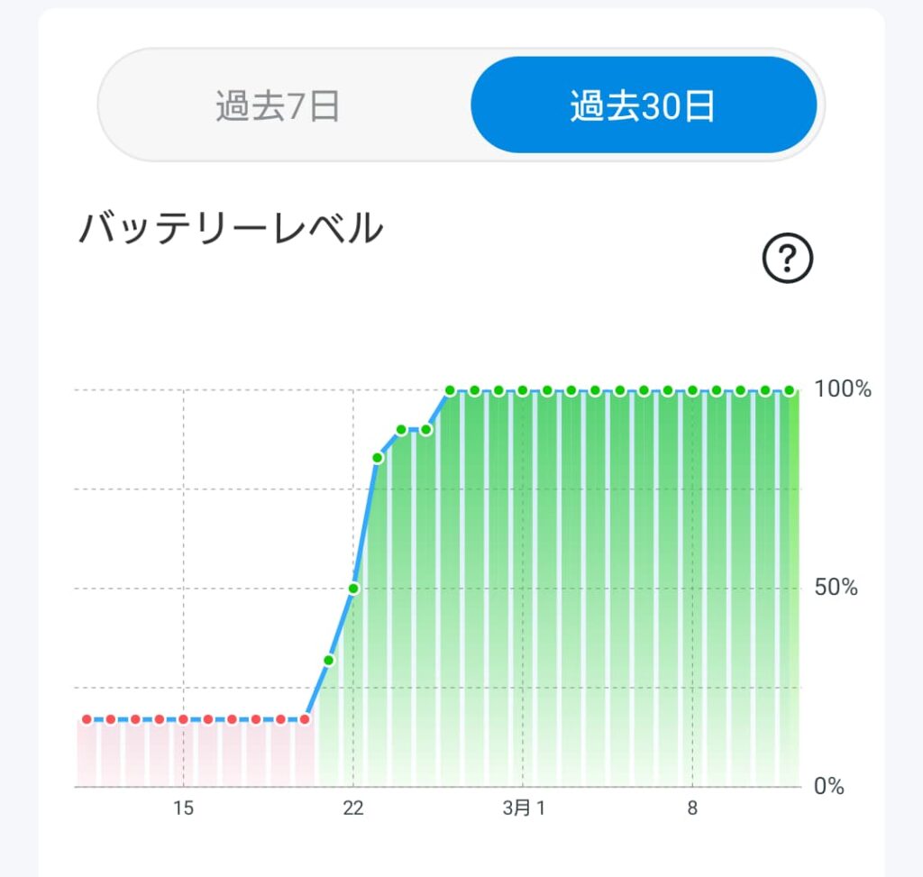 「ソーラーって本当に足りるの?」が一番気になっていたので、設置後のバッテリー残量をメモしました。